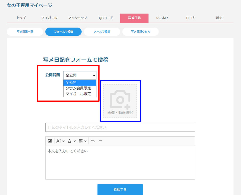 写メ日記には全体公開とマイガール限定とフリーポスの3つがあります。