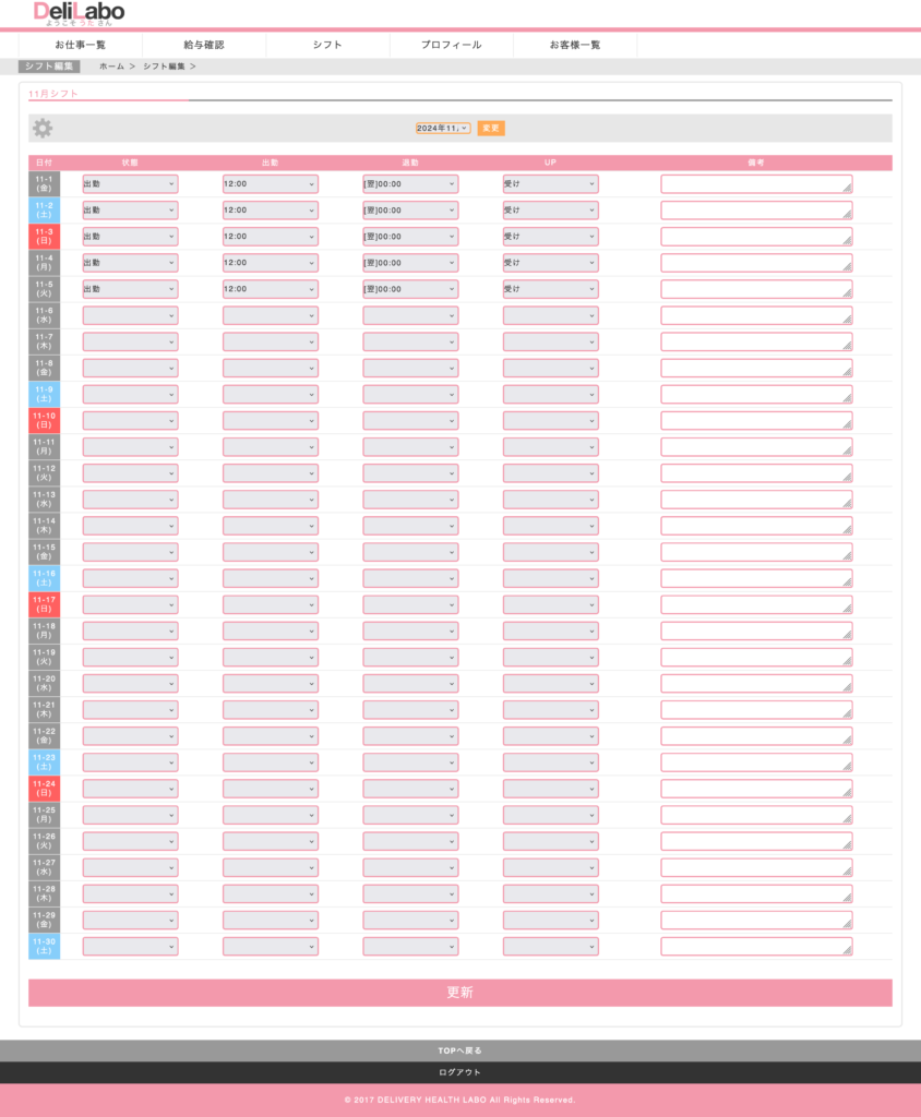 デリラボはお仕事の確認や、シフトの管理をするシステムになります。